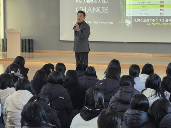 ¿¬»ç·Î ÃÖÀçºØ ¼º±Õ°ü´ëÇб³ ±³¼ö¸¦ ÃÊÃ»ÇØ ¡®AI ½Ã´ë, Áø·Î¿Í ±â¾÷°¡Á¤½ÅÀÇ ¸¸³²¡¯À» ÁÖÁ¦·Î Çлýµé¿¡°Ô Ưº°ÇÑ °ÀǸ¦ ¼±»çÇß´Ù.