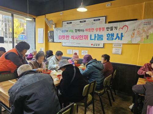 À̳¯ Çà»ç´Â ¿ÀÀü 11½ÃºÎÅÍ ¿ÀÈÄ 1½Ã±îÁö ÁøÇàµÇ¾úÀ¸¸ç, »óºÀµ¿ Áö¿ª»çȸº¸ÀåÇùÀÇü À§¿øµéÀÌ Âü¿©ÇØ ¼ºù°ú ¾È³»¸¦ ¸Ã¾Æ ¾î¸£½ÅµéÀÌ Æí¾ÈÇÏ°Ô ½Ä»çÇÒ ¼ö ÀÖµµ·Ï Áö¿øÇß´Ù.