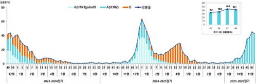Áúº´Ã»¿¡ µû¸£¸é ¿ÃÇØ 48ÁÖÂ÷(11¿ù 23ÀÏ~29ÀÏ) ÀÎÇ÷翣ÀÚ ÀÇ»çȯÀÚ(ÀÇ½É Áõ»óÀ» º¸À̴ ȯÀÚ) ºÐÀ²Àº 69.4¸íÀ¸·Î ¿¹³â °°Àº ±â°£º¸´Ù ³ôÀº ¼öÁØÀ» º¸À̰í ÀÖ´Ù.