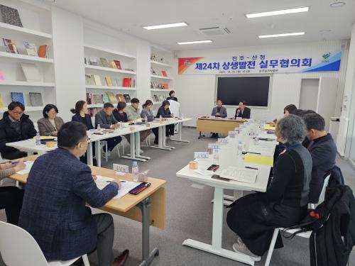 À̹ø ÇùÀÇȸ¿¡¼´Â °ü±¤ ºÐ¾ß¿¡¼ ¡®ÁøÁÖ-»êû °ü±¤È«º¸ ¸®Çø´¡¯ÀÇ °øµ¿Á¦ÀÛÀ» ¿Ï·áÇØ 2026³â ÃÊ ½Ã¡¤±º¹Îµé¿¡°Ô ¹èÆ÷ÇÒ °èȹÀÓÀ» ¹àÇû´Ù. °æÁ¦ ºÐ¾ß¿¡¼´Â 2026³â °íÇâ»ç¶û±âºÎÁ¦ÀÇ »óÈ£ ±âºÎ¸¦ ¾à¼ÓÇßÀ¸¸ç, ÀÌ ¹Û¿¡µµ 11°³ °øµ¿»ç¾÷ÀÇ È°¼ºÈ¸¦ À§ÇÑ ´Ù¾çÇÑ ÀǰßÀ» ÁÖ°í¹ÞÀ¸¸ç, µÎ ½Ã±ºÀÇ »ó»ý¹ßÀü°ú Áö¿ª ÈÇÕÀ» ´ÙÁö´Â ½Ã°£À» °¡Á³´Ù.