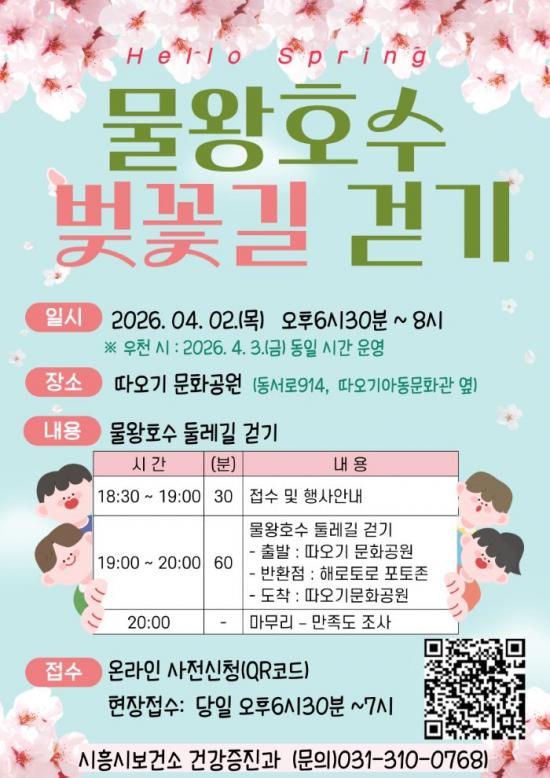 Çà»ç´Â ¿ÀÈÄ 6½Ã 30ºÐºÎÅÍ 7½Ã±îÁö Âü°¡ ½Åû ¹× Çà»ç ¾È³»¸¦ ÁøÇàÇÑ µÚ, ¿ÀÈÄ 7½ÃºÎÅÍ 8½Ã±îÁö ¹°¿ÕÈ£¼ö µÑ·¹±æ °È±â ÇÁ·Î±×·¥ÀÌ ¿î¿µµÈ´Ù. Çà»ç Á¾·á ÈÄ¿¡´Â Âü¿© ½Ã¹ÎÀ» ´ë»óÀ¸·Î ¸¸Á·µµ Á¶»ç¸¦ ÁøÇàÇØ ÇâÈÄ ÇÁ·Î±×·¥ ¿î¿µ¿¡ ¹Ý¿µÇÒ ¿¹Á¤ÀÌ´Ù.